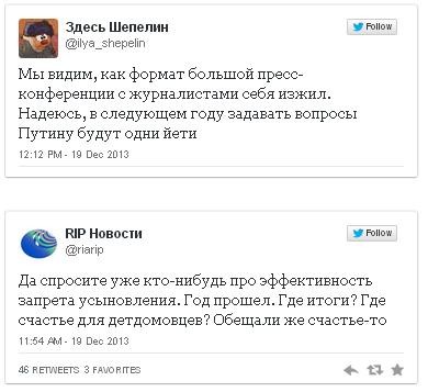 Путин все рассказывает, как плохо Украине будет в Европе: предприятия закроются, деньги закончатся. Про подарок в 15 миллиардов долларов: «Это никак не связано ни с Майданом, ни с европереговорами, мы просто считаем, что Украина в сложной ситуации, и решаем ее поддержать. Я здесь не вижу никакого расточительства, это просто поддержка наших друзей». Обещает размещать ценные бумаги Украины (которые теперь будут принадлежать России) на бирже Ирландии – страны-банкрота последнего финансового кризиса. Действительно, о каком расточительстве может идти речь.