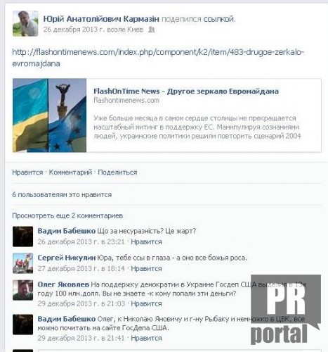 В ответ на опубликованный материал «Седина в бороду, гей в ребро! Геи Кармазина «мочат» Порошенко и Яценюка», информационный ресурс Flashontimenews обвинил PRportal в «джинсе» и взломе Фейсбука Юрия Кармазина.