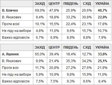 Таким чином цілком впевнено можна припустити, що і у останньому опитуванні Віктор Янукович гарантовано програє другий тур будь-якому з кандидатів від опозиції.