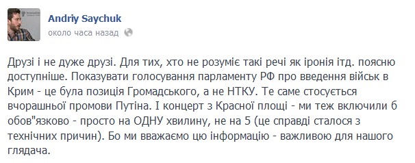 Сьогодні на своїй сторінці у Facebook Сайчук написав наступне: