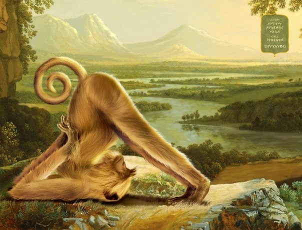 Обезьяны в рекламе "древних курсов йоги" Divyayog