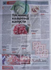 Кроме агитационных материалов в газете опубликованы "Тайны квашенной капусты" и кроссворд. По всей видимости, штаб Корнацкого рассчитывает, что, "тонко завуалированная" капустой, газета будет лучше усваиваться избирателем, а ЦИК не заметит агитации. Официально предвыборная кампания стартует 16 октября.