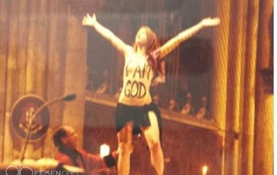 Активистка взобралась на алтарь собора, в котором присутствовали тысячи людей, и продемострировала обнаженное тело с надписью "I AM GOD!". Возомнив себя Богом, феминистка протестовала против пропаганды криминализации абортов Ватиканом