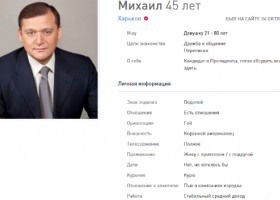 Анкета нардепа від "Опоблоку", екс-голови Харківської ОДА Михайла Добкіна зареєстрована на сайті знайомств
