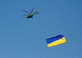 Во Львове в небо на вертолете Ми-8 был поднят самый большой государственный флаг Украины в честь празднования Дня национального флага.