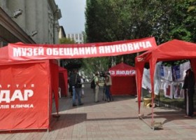 Активисты партии УДАР открыли палаточный лагерь и по совместительству Музей обещаний Януковича