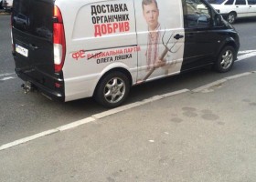 Сегодня по центру Киева разъезжает два автомобиля с портретом лидера Радикальной партии Олега Ляшко традиционно с вилами в руках, но несколько измененным названием партии.