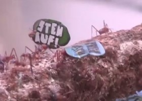 Насекомые несли листочки с лозунгами "Помогите" или "Спасите Амазонию"