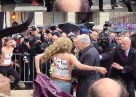 Активістки руху FEMEN атакували лідера ультраправої партії "Національний фронт" Марін Ле Пен.