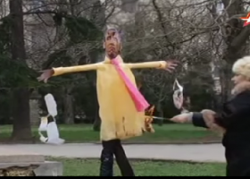 Севастопольские пенсионеры в одном из городских скверов провели необычную акцию - сожгли чучело Барака Обамы