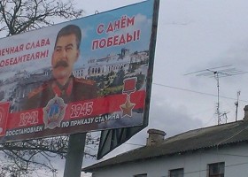 В нескольких людных местах и на центральных автомобильных дорогах города на больших рекламных щитах разместили фото президента России с лаконичным, но понятным текстом,пишет День