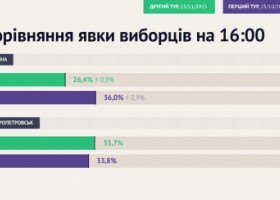 Явка на виборчі дільниці станом на 16:00 становить лише 26,4%.