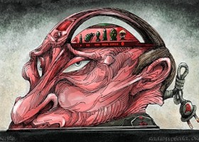 В этом году тема конкурса политической карикатуры – "Тоталитаризм". Как заявляют организаторы, конкурс посвящен созданию в мире "нового порядка", при котором любую агрессию против соседнего государства можно оправдать "зовом крови", подобно тому, как это было в годы расцвета фашистских государств.