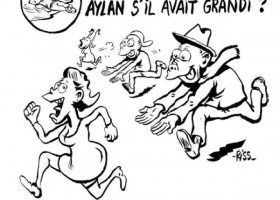 На картине изображены девушки, убегающие от мужчин восточной внешности