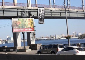 Внимание киевлян, которые сегодня утром стояли в пробке на ул. Набережное шоссе в сторону Почтовой площади, привлек рекламный плакат с изображением мужского полового органа и надписью «Люстрацiя або кастрацiя»