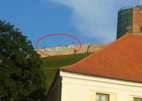 Владимиру Путину в Литве не рады. Политики тут ни при чем. Не рады люди. Об этом более чем понятно они заявили, поместив на главный символ страны — Башню Гедеминаса — огромную «растяжку» с уже ставшим традиционным мемом.