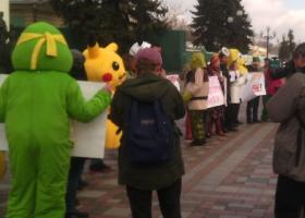 Під Верховною Радою кілька десятків активістів у костюмах мультиплікаційних героїв беруть участь в акції "Хочу бути аудитором НАБУ"