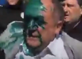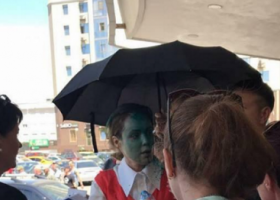 Неизвестный в камуфляже облил лицо Натальи Королевской зеленкой.