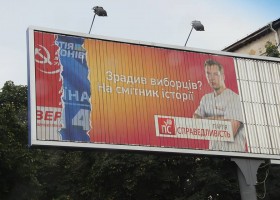 Партія "Справедливість" розмістила рекламу в якій пропонує тих хто зрадив виборців викинути на "смітник історії". До зрадників зарахували лише КПУ та Партію Регіонів.