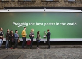 Carlsberg запустил необычный билборд, который позволяет всем желающим получить бесплатное пиво. На постере гласит сообщение: "Возможно, лучший постер в мире".