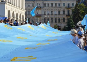 У неділю ввечері кілька сотень активістів пройшлися по центру Києва ходою з кримськотатарським прапором довжиною 39 метрів.