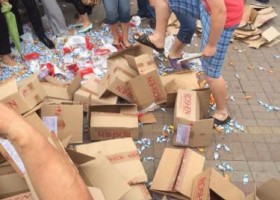 В Донецке во время митинга против АТО участники растоптали конфеты, украденные накануне из разграбленного супермаркета "Метро".