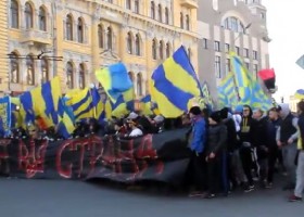В інтернеті з'явилося відео ходи фанатів харківського футбольного клубу Металіст і донецького Шахтаря перед матчем цих двох команд у Харкові.