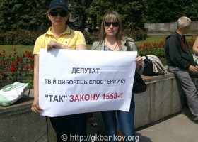Під Верховною Радою близько 100 мітингувальників вимагають прийняття в цілому законопроекту № 1558-1 про конвертацію валютних споживчих кредитів за офіційним курсом гривні на дату укладання угоди.