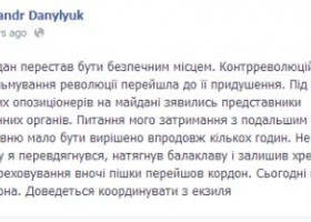 Руководитель организации "Спільна справа" Александр Данилюк покинул Украину, сославшись на опыт Тимошенко и небезопасность Майдана.