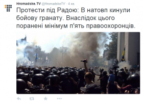 Після ухвалення законопроекту про змін до Конституції біля Верховної Ради розпочалися сутички