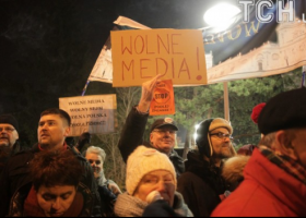 У Польщі поліція відтіснила демонстрантів, які протестували під Сеймом, та згодом було встановлено тимчасову огорожу.