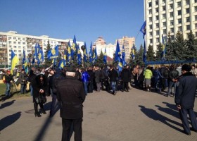 Возле здания Центральной избирательной комиссии в Киеве по адресу площадь Леси Украинки, 1 собрались около сотни сторонников ВО "Свобода"