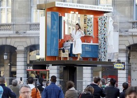 Ikea превратила билборды в настоящие ванные комнаты, в которых актеры чистили зубы и укладывали волосы, в рамках маркетинговой инициативы на вокзале Сен-Лазар в Париже