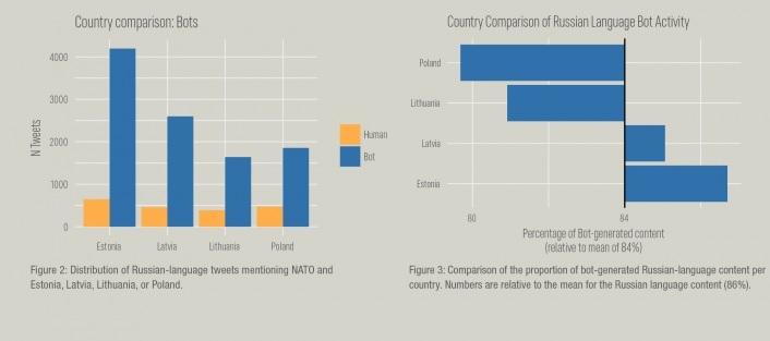 З чотирьох країн - Естонія, Латвія, Литва та Польща – Естонія найчастіше є мішенню бот-повідомлень. Тоді як в Польщі та Литві спостерігали найменше діяльності автоматизованих акантів.