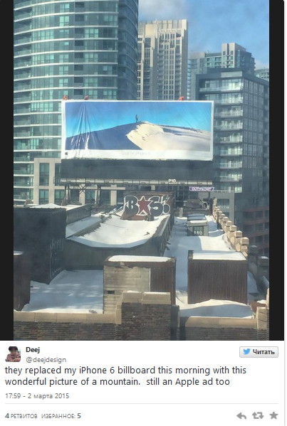 В нем представлено множество фотографий со всего мира, которые были сняты пользователями на смартфон Apple iPhone 6. Сегодня в сеть попало множество фотографий рекламных биллбордов со всего мира с рекламой «Снято на iPhone 6». (“Shot on iPhone 6”),сообщает i-ekb.ru