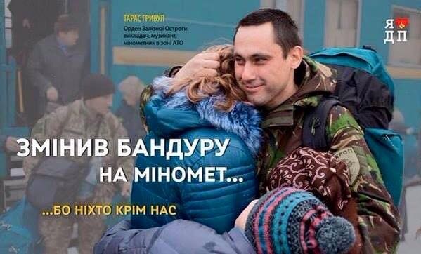У соціальних мережах з’явились мотивуючі фото з зображенням «героїв нашого часу» - чоловіків, які покинули свої улюблені справи і взяли в руки зброю.Фото опубліковала спільнота "Наш Киев" в Фейсбук