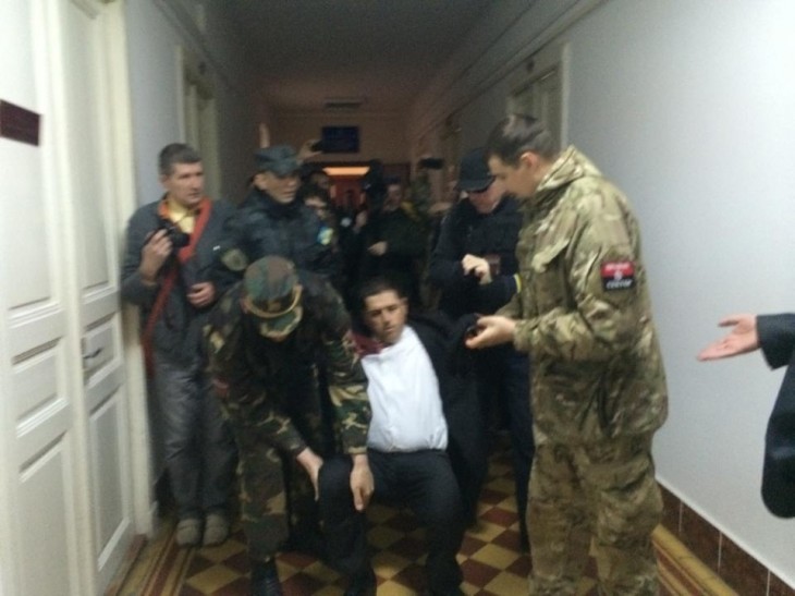 Активісти "Правого сектору" силоміць виволокли з кабінету начальника Головного управління юстиції в Івано-Франківській області Василя Кавацюка і вкинули до сміттєвого контейнера,повідомляє місцевий сайт КУРС