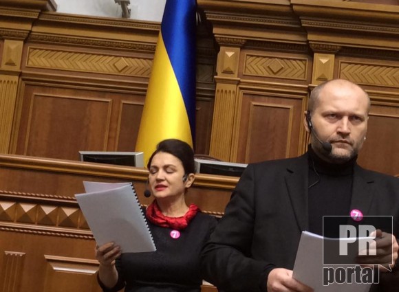 У залі Верховної Ради народні депутати поставили п'єсу "Сім". Це відбулося у перерві засідання. В такий спосіб політики виступали проти насильства у сім'ї.