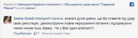 На своей странице в Facebook общественная организация Лига защиты прав женщин «Гармонія рівних» призвала компанию убрать рекламу, которая дискриминирует женщин и нарушает международные стандарты и отечественное законодательство.