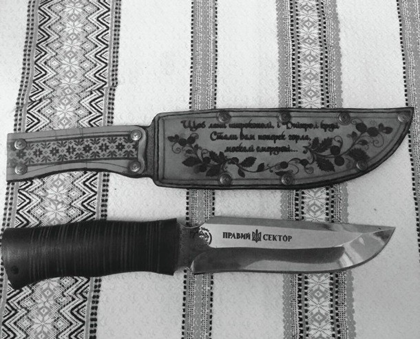 "Только что мне позвонил мой друг Борис Филатов и сказал, что, ему заблокировали его аккаунт Фейсбук за фото с ножом, который ему подарил Дмитрий Ярош.
