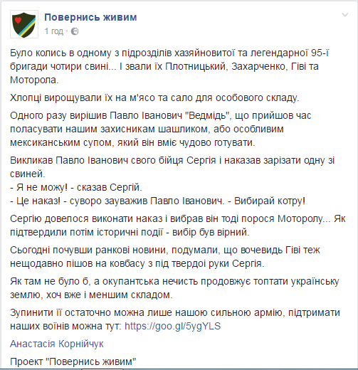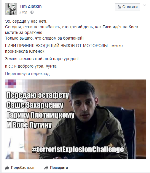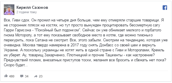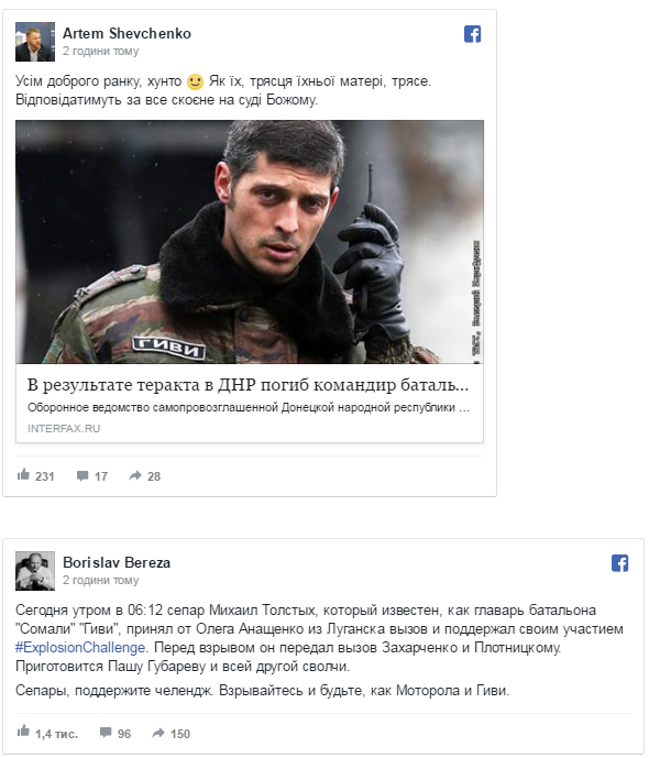 "Гіві" прийняв дзвінок від "Мотороли": як соцмережі відреагували на ліквідацію ватажка бойовиків