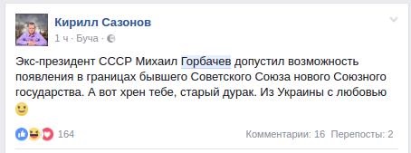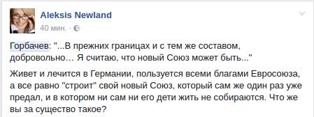 "Советского Союза - нет, а Союза - да. Я считаю, что Союз новый может быть. В прежних границах и с тем же составом, добровольно…", - заявил Горбачев по случаю 25 годовщины распада СССР.