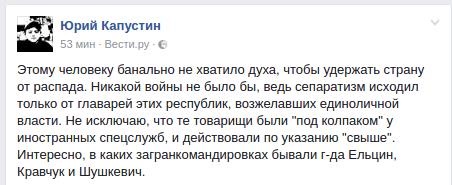 В развале Советского Союза он обвинил особенности характера Бориса Ельцина и Августовский путч.