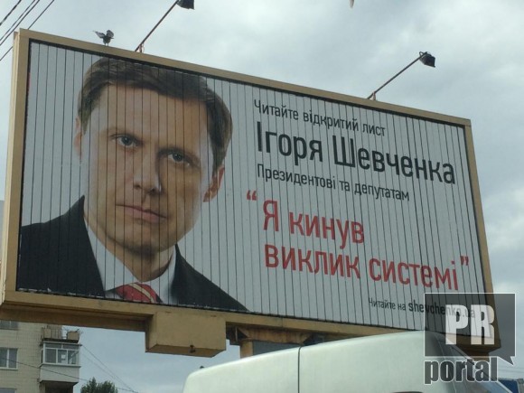 Экс-министр экологии и природных ресурсов Украины Игорь Шевченко, по всей видимости, начал свою предвыборную кампанию.В Киеве появились ситилайты с лозунгами, которые оригинально замаскированы под название открытых писем адресованных к президенту Украины и народным депутатам.