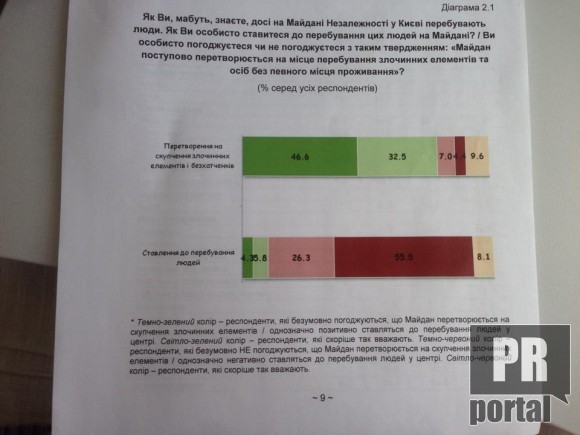 Следует отметить, что 80% киевлян поддерживали участников протестов 2013-2014 гг, однако по мнению 79% киевлян, сегодня Майдан превратился в место скопления преступных элементов и лиц без определенного места жительства.