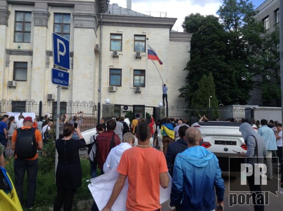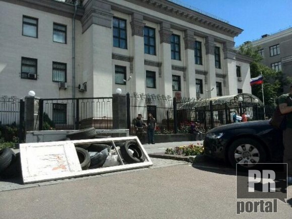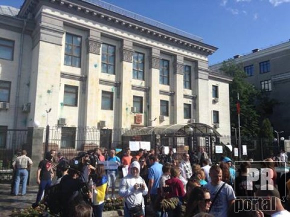 Киевляне взяли в осаду и забросали яйцами российское посольство в Киеве