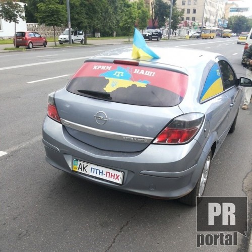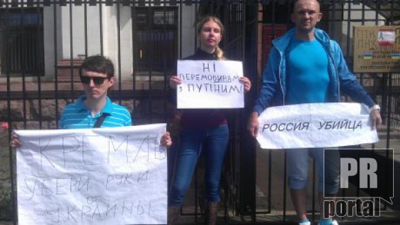Из припаркованных автомобилей активистов раздаются украинские патриотические песни. Автомобилисты, проезжающие мимо посольства поддерживают пикетчиков громкими сигналами.