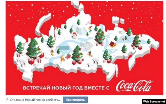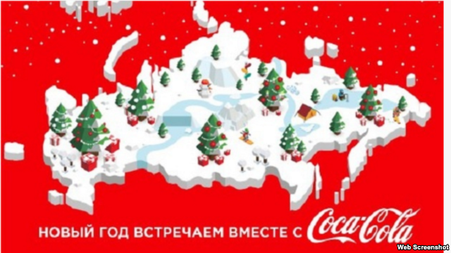 У вівторок, 5 січня, російське представництво компанії Coca-Cola розмістило в російській соцмережі «ВКонтакте» мапу Росії, на якій під виглядом частини території цієї країни був зображений тимчасово окупований український Крим. При цьому тоді російське представництво компанії Coca-Cola вибачилося за те, що в попередній версії цієї мапи були неточності.