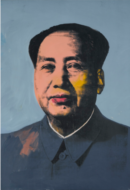 Картина "Мао" 1972 року, виконана у техніці шовкографії та із використанням яскравих кольорів.
