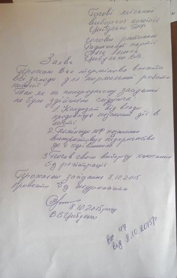 Коли ж журналіст попросив озвучити мотивувальну частину рішення комісії, Цибулько зачитала статтю 52 Закону України «Про місцеві вибори», яка говорить, що «під час виборчого процесу засоби масової інформації розміщують інформаційні матеріали на замовлення територіальних виборчих комісій на підставі відповідних договорів, укладених із зазначеними комісіями». Голова комісії зазначила, що ніякого договору укладено не було і попросила Юрія Черемиса покинути зал засідання.